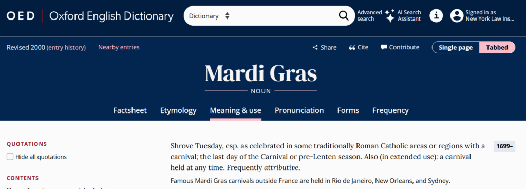 While we don’t hold out hope of ending the argument, it is interesting that the definitive Oxford English Dictionary mentions New Orleans in its listing….